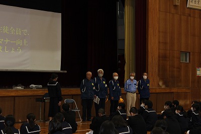 本年度最後のあいさつ運動が行われました。本年度は保護者の皆さまにはボランティアで参加いただきましたが、「少しでもお役に立てれば」とのうれしい言葉をいただき感謝申し上げます。お陰様であいさつを交わす風景が日常となってきました。ありがとうございます。