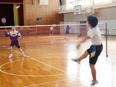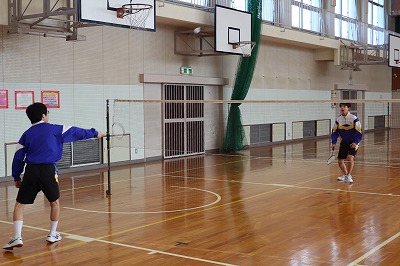 男子体育は、体育館でバトミントンを行いました。3分ごとに対戦相手を変え、競い合っていました。