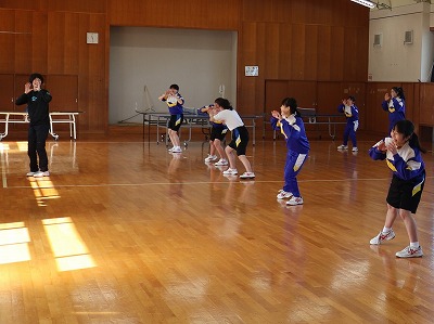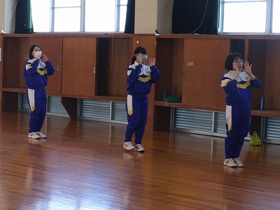 女子体育は、柔剣道場でダンスを行いました。先生が示す面白い振り付けを楽しみながら覚えていました。