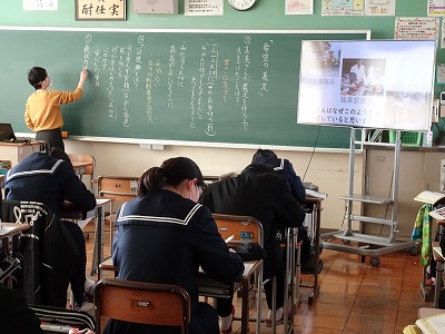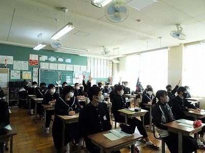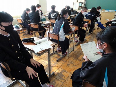本年度最後の授業参観が行われました。学年のまとめの時期でもあります。生徒の皆さんはしっかりと授業に取り組んでいました。保護者の皆さまにはお忙しい中をご来校いただきありがとうございました。