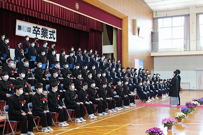 3年生は、義務教育の集大成として、すばらしい姿勢で式に臨むことができました。