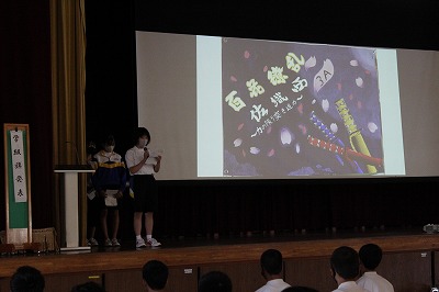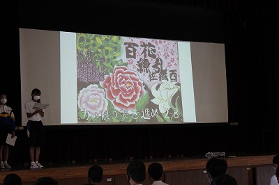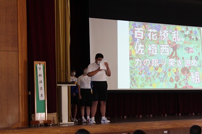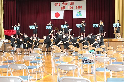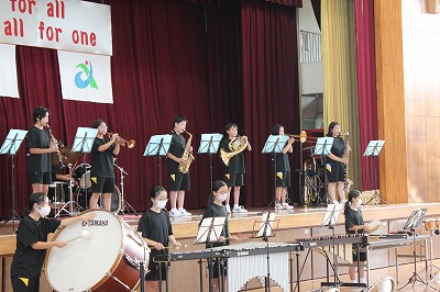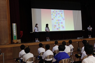 学級旗発表や総合的な学習の時間の発表など、これまでまとめ上げてきたものを工夫しながら発表しました。吹奏楽部は、ほとんど練習ができない中でしたが、楽しい演奏を行いました。感染対策のため、リモート演奏で行いました。