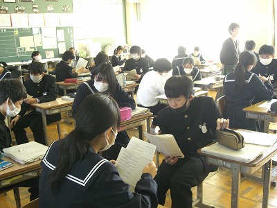 本年度、授業参観を行うのは初めてです。保護者の方も、本年度初めて、あるいは、久しぶりに学校にお出かけいただいた方が多くいらっしゃいました。生徒たちは、保護者に見ていただいているためか、すこし恥ずかしそうに授業に臨んでいました。