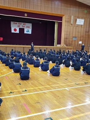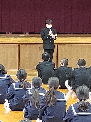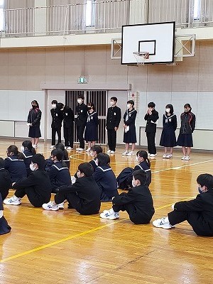 本校には2つの小学校から新入生を迎えます。その新入生を中学校に招き、生徒会を中心に西中での中学校生活についての説明会を行いました。授業の様子や自転車通学のルールなどを分かりやすく教えてくれました。