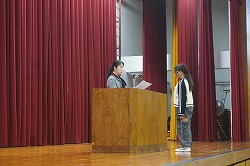 校長講話では、「社会を明るくする運動」作文コンテストで表彰された「一人じゃないと思える世界に」と題された作文を読みました。全校児童が真剣な面持ちでこの作文を聞いておりました。