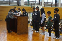 朝礼では、最初に表彰と委員会委員長の認証式がありました。表彰では先日校長室で行われた「社会を明るくする運動」作文コンテストの表彰を全校児童の前で行いました。認証式は後期委員会委員長の認証です。佐屋小のためによろしくお願いします!