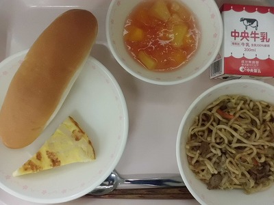 小型ロールパン 牛乳 焼きそば スペイン風オムレツ
