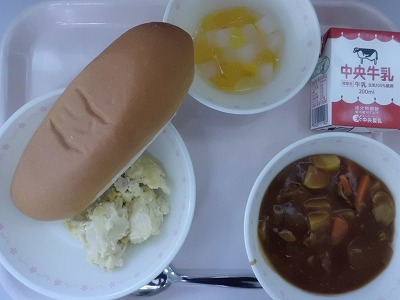 麦ごはん 牛乳 鶏肉の唐揚げ カレーライス すずなの和え物