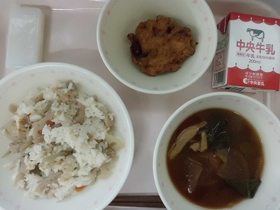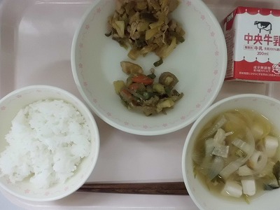 ごはん 牛乳 けいちゃん さつまいもの五目煮 愛西三つ葉とゆばのすまし