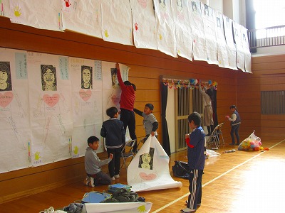 4年生が二分の一成人式の準備を自分たちで行っていました。掲示物や飾りつけなど、自分たちの手でできることは自分たちでやろうと、力を合わせていました。