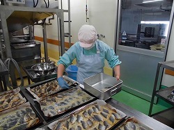 鰆の西京焼きは給食センターでみそだれを手作りし、漬け込みました。給食は、提供時間が決まっているため、長い時間漬け込むことはできませんが、魚を半解凍させてから漬け込むなどして、なるべく味が染み込むように工夫しておいしく仕上げています。