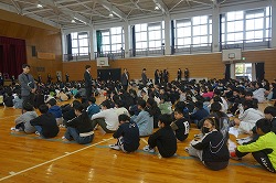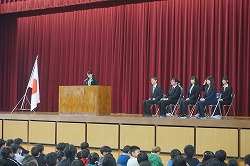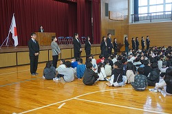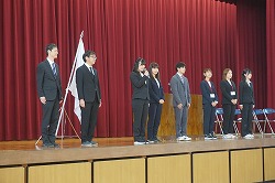 最初に着任式で新しくお見えになられた先生方よりご挨拶をいただきました。詳しくは学校だよりに掲載しておりますので、そちらをご覧ください。