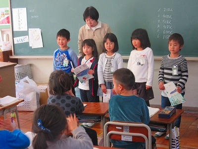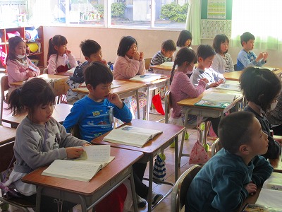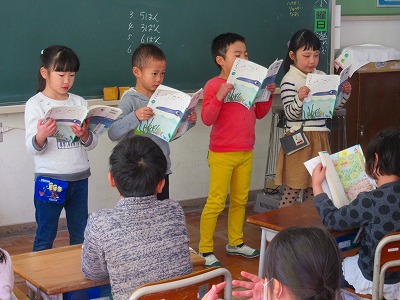 1年生が国語で「たぬきの糸車」の音読をしていました。友だちの前でも堂々と大きな声で読むことができていました。