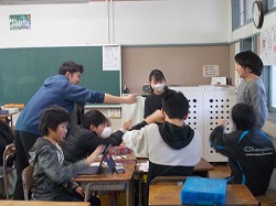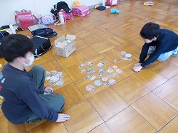 愛西市赤十字奉仕団の方を各クラスに講師として迎え、防災ボードゲーム「いえまですごろく」を体験させていただきました。これは、すごろくの中で災害時のシチュエーションを疑似体験し、防災の知識を学ぶものです。AEDを持って心肺停止になっている人を助ける場面になっても自分がけがをしているので、身動きができない。さあどうする?といった場面設定があり、子どもたちも随分悩んでいました。疑似体験を通して防災について考える時間となりました。