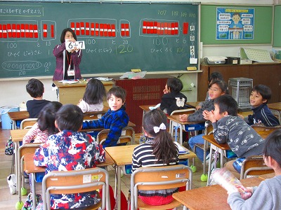 1年生が算数で100までの数のたし算・ひき算を学んでいました。教師から出された計算式のカードを見て、素早く頭の中で答えを出す練習です。すなわち暗算です。たし算はすぐに答えがみんなの口から出ますが、ひき算になるとやや間があり……。頭の中で数字が回っています。
