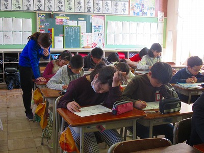 5年生が算数で4月から学んだ内容の復習をしていました。この時期から4月の始業式までの休みを含めて40日間の学習が大変重要です。自主学習でも5年生の学習のまとめを行い6年生になる準備を進めていきましょう。