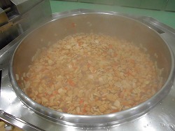 寒い冬に温まる関東煮を作りました。こんにゃくは一度下茹でをして、あく抜きをしてから使用しています。このひと手間をかけることにより、えぐみや臭みが抜けておいしく仕上がります。子どもたちにおいしいと言ってもらえるようにひと手間を惜しまず、心をこめて作っています。
