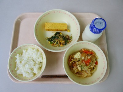 ご飯、牛乳、たまごやき、大根のそぼろ煮、ほうれん草のおかか和え