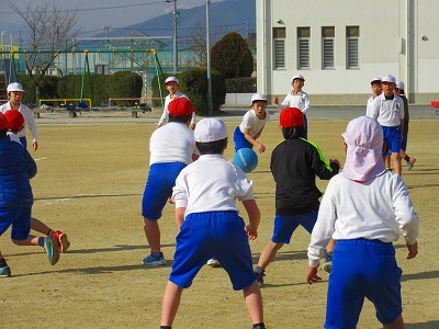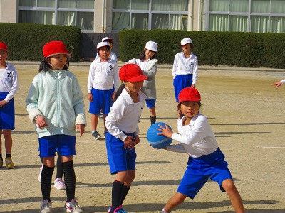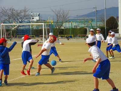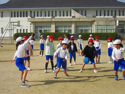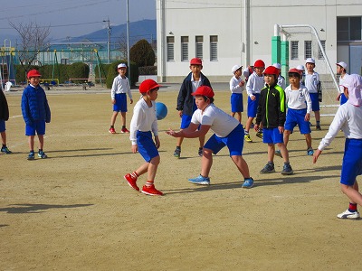 3年生が体育でドッジボールに取り組んでいました。3年生ともなると、投げるボールも速くなり、ボールをかわす動作もずいぶん機敏になっていました。