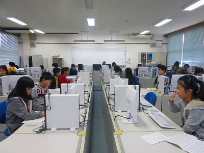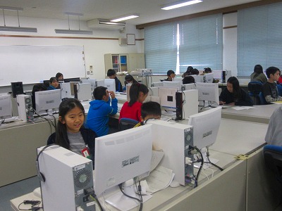 5年生がワープロソフトを使って福祉実践教室新聞を作っていました。写真や記事で紙面を構成していました。レイアウトが一人一人違って、オリジナルな新聞ができそうです。