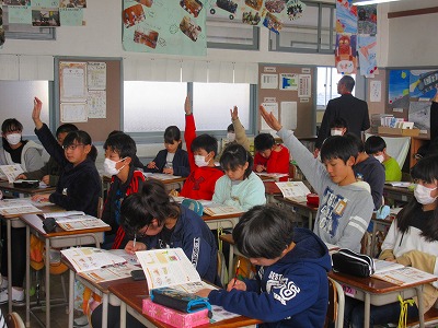 6年生が「海の命」の二の場面を読み、与吉じいさの人物像や生き方について読み取っていました。 授業が進むにつれ、この話のクライマックス、中心主題に迫っていきます。