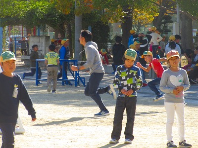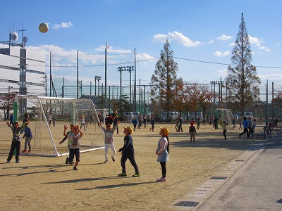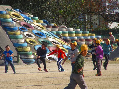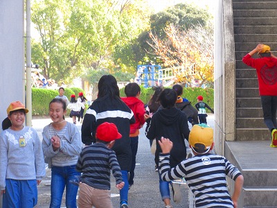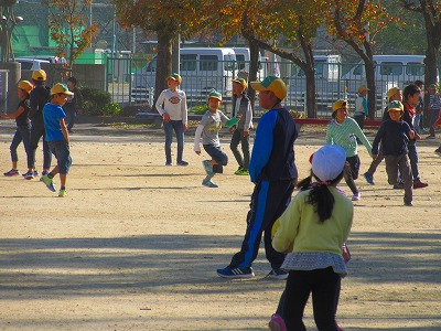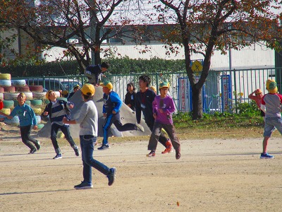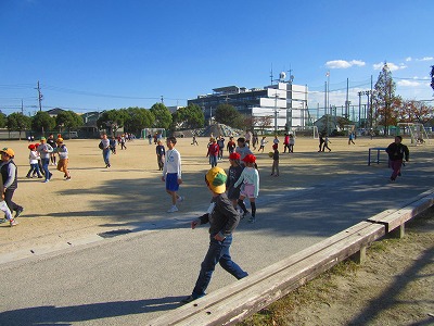 昼休みの運動場、今日も元気いっぱいの子どもたちが楽しそうに走り回っていました。何人かの教師も子どもたちに交じって遊んでいました。遊びを通して体力をつけ、インフルエンザに負けない丈夫な体を作っていきましょう。