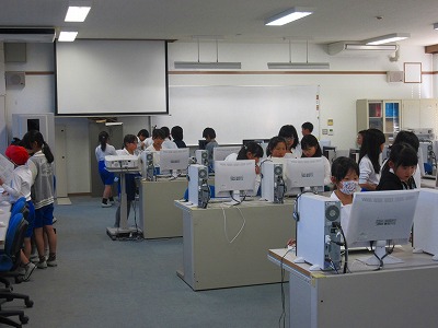 6年生がキーボードでアルファベットを入力する練習をしていました。より正確により早くを目標に、入力ソフトを活用していました。