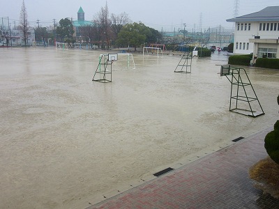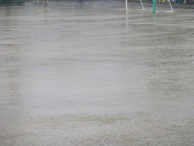 久しぶりにまとまった雨が降りました。みるみるうちにグラウンドには水があふれ、今日は久しぶりにグラウンドで遊ぶことが一休みとなりました。