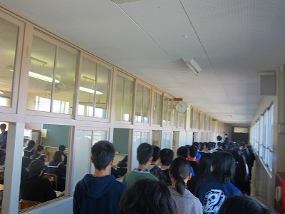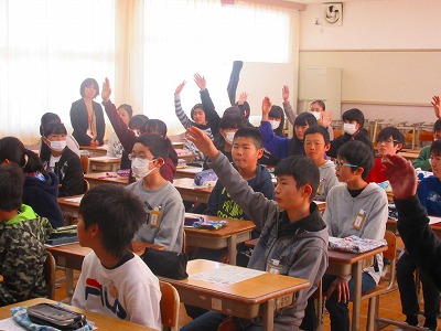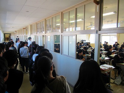 3月7日、6年生がお隣の佐屋中学校を訪れました。先輩たちの集中して授業に取り組んでいる姿を目の前にして、どう授業に臨むとよいのか、大いに参考になりました。