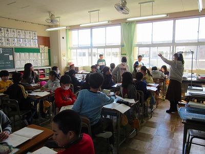 5年生が理科で「ふりこ」について学んでいました。ふりこの1往復の時間をストップウォッチを使ってはじき出していました。10往復する間の時間を計り、10で割ることで1往復にかかる時間を求めました。これを3回繰り返すことでより正確な時間を導き出していました。