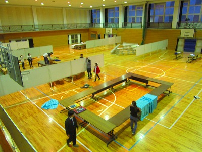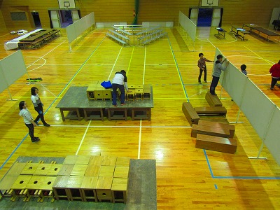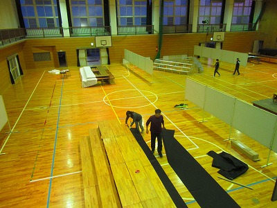 職員作業で体育館に作品展用のパネルが運び込まれ、組み立てが完成しました。各学年の展示スペースには、作品がより見やすくなるよう展示台が作られていました。今週の金・土曜日に開催される作品展に向けて明日以降に順次、児童作品が展示されます。