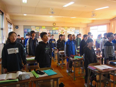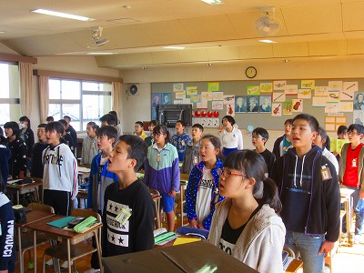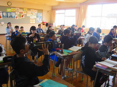 6年生が音楽で合唱練習をしていました。卒業に向けて1曲ずつ丁寧に歌い込んでいました。練習の合間に水筒を取り出してお茶を飲み、のどをうるおし、こまめに給水していました。乾燥した空気からのどを守っていました。インフルエンザの予防にもなりますね。