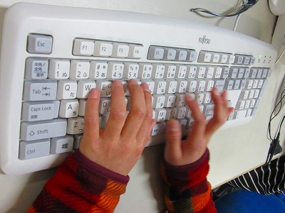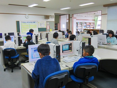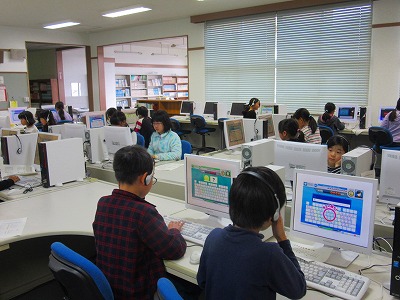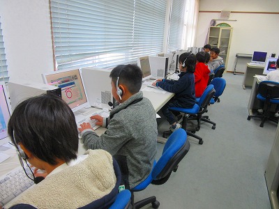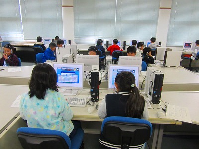 3年生が総合の学習でコンピュータのキーボードの操作に慣れるよう、トレーニングソフトで、両手を使ってローマ字入力の練習をしていました。みんな集中して取り組んでいました。
