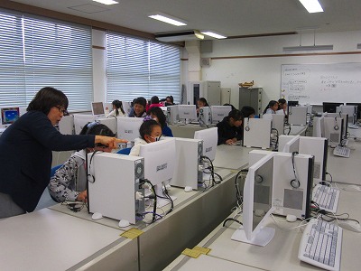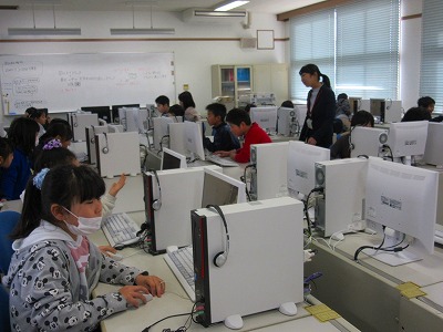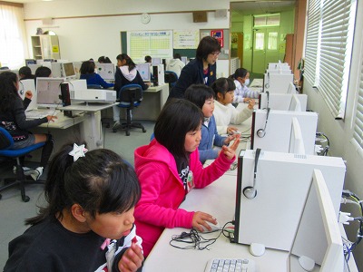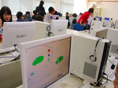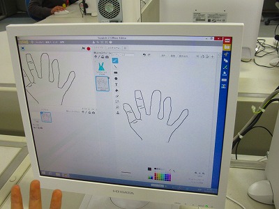 4年生が総合学習でペイントソフトを使って、自分の手を描いていました。マウスの操作の練習にもなりました。ICT支援員さんの指導を受けながら、色を付けるところまでなんとかたどり着くことができました。