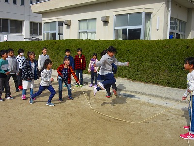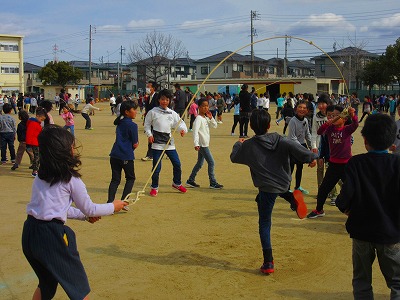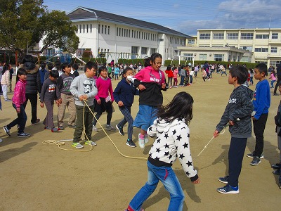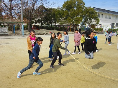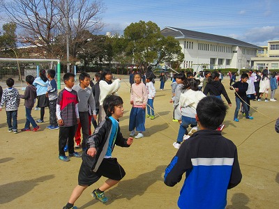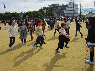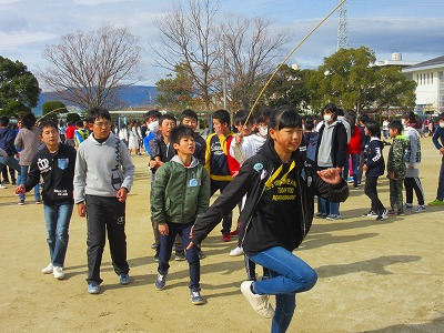 練習の成果をどのクラスも発揮して、8分間で1000回を超えるクラスがいくつか出てきました。なわを回す子はとても大変でしたが、みんなのためによく頑張りました。