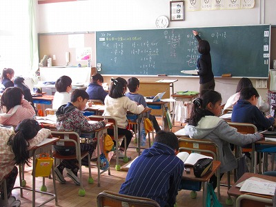 4年生が算数で帯分数の入った計算を学んでいました。帯分数を仮分数に直して答えを求める方法などが理解できました。
