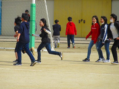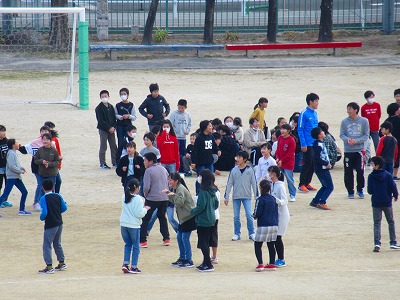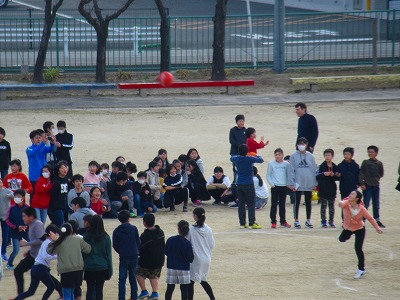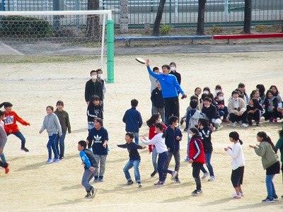 6年生が学年全員そろって最後のレクリエーションを楽しんでいました。お決まりのハンターゲームも盛り上がっていました。ドッジボールでは、ドッジボールとドッジビーのソフトディスクが飛び交っていました。あっという間に楽しい時間が過ぎていきました。みんな仲良しな6年生であることが楽しみ方からよく分かりました。