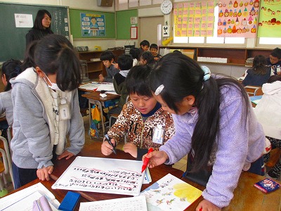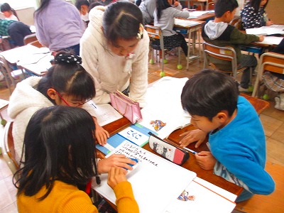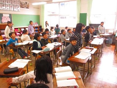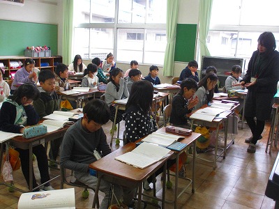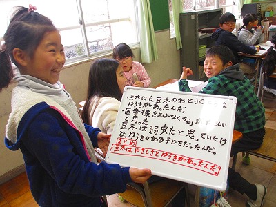 3年生が国語の学習で「モチモチの木」を学んでいました。学習のめあては「最後の場面のじさまの気持ちを考えよう」です。グループのみんなで考えたじさまの気持ちをグループごとに発表していました。