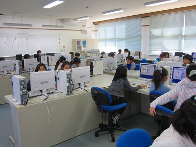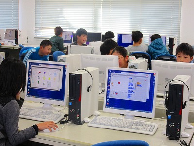 3年生が総合の学習でプログラミングソフトを使って、動く画像を楽しんでいました。自分で作ったプログラムによって画像が動き出しました。