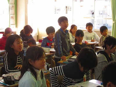 5年生が家庭科の授業で買い物について学んでいました。身近な生活における消費の学習を通して物やお金の大切さに気付き、目的に合った物の選び方や環境に配慮した選び方について考えを発表していました。