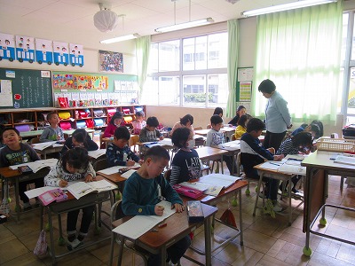 1年生が算数の学習で、持っている50円玉で何が買えるのかを考えていました。買えるのか?買えないのか?理由を明らかにする学習でした。