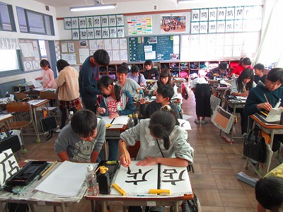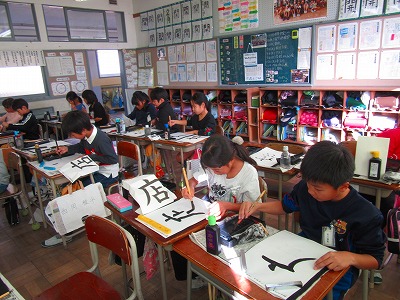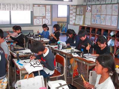 4年生が書写で「店」の文字を練習していました。漢字の組み立てのバランスに注意しながら集中して書いていました。
