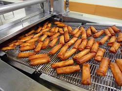子どもたちに大人気の麻婆豆腐、今回は今が旬のなすを使用しました。麻婆豆腐はなすをはじめ、たまねぎ、にんじんなど7種類の野菜を使用しており、野菜がおいしく食べられますので、野菜嫌いな子もすすんで食べてくれます。