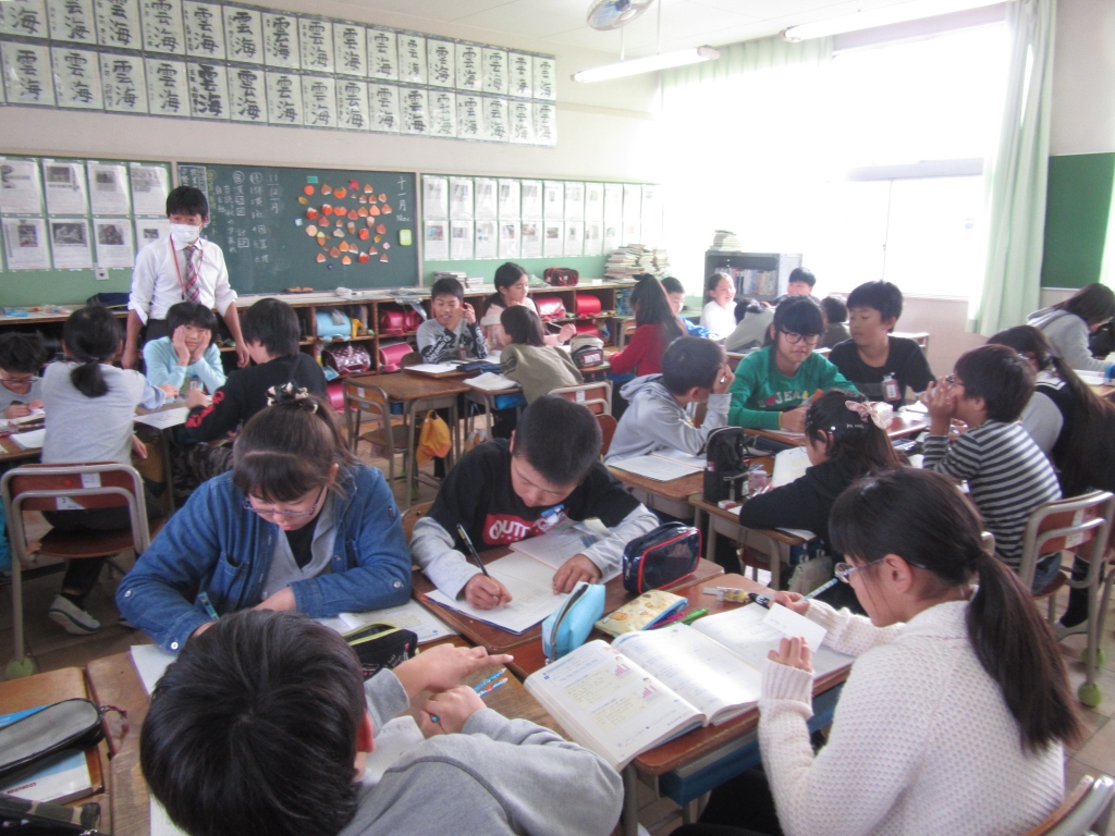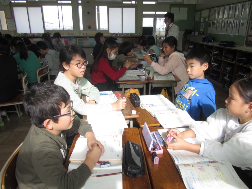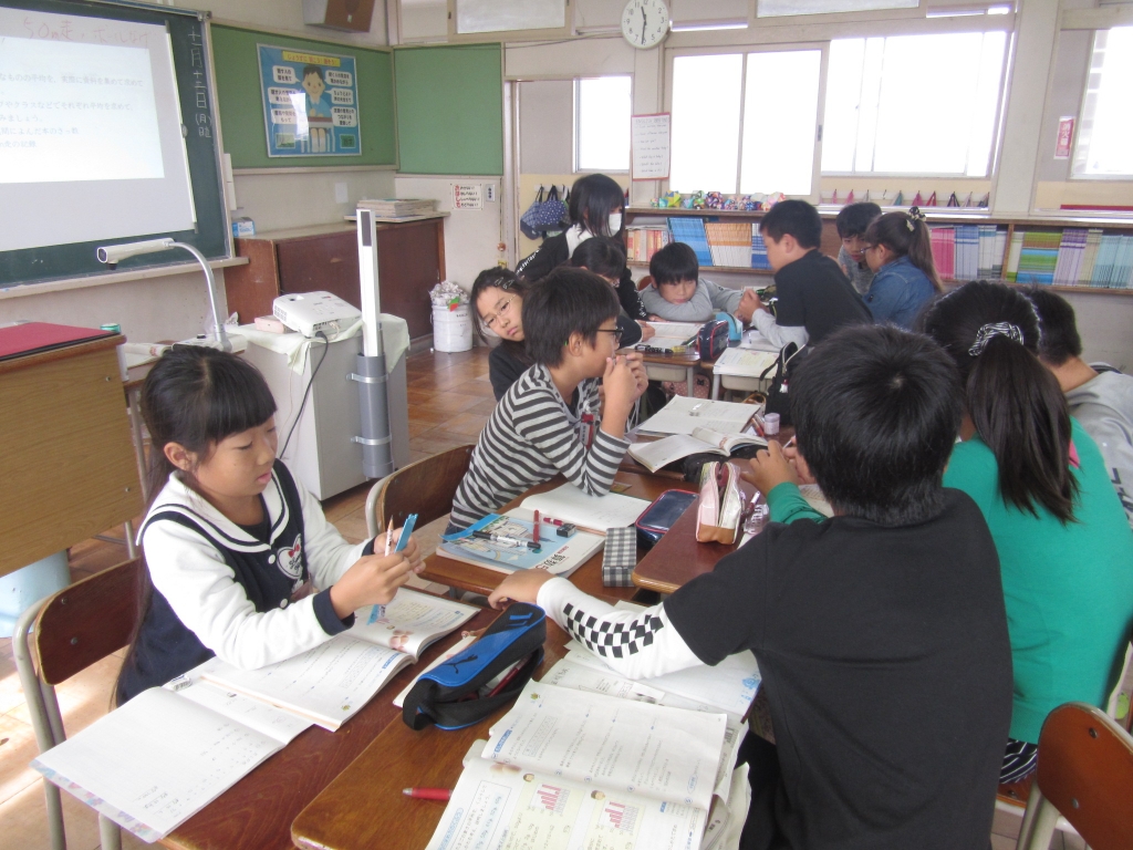 5年生が算数で、平均の意味 や計算の仕方を学び、さらに平均で比べることの有用性や必要性を理解する学習に取り組んでいました。早速、筆箱の中の鉛筆の本数調べをみんなで行い、平均の考え方を生かして生活に活用しようとしていました。
