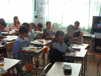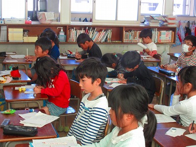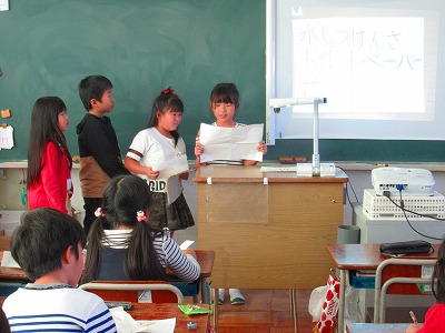 3年生がチームで協力して調べたことを分担して発表していました。インタビューをして分かったことを中心にみんなに伝えました。聞いている子たちは、大事なことを落とさずに素早くメモを取っていました。