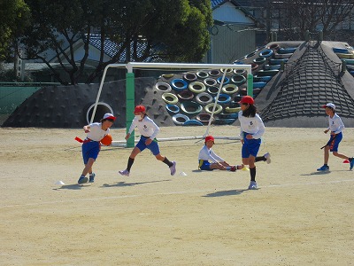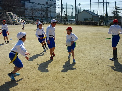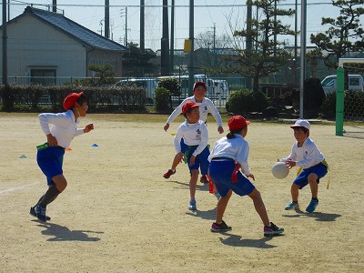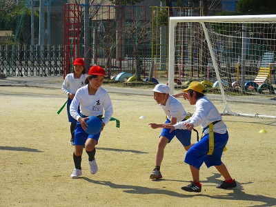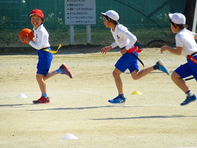 4年生が体育でタグラグビーに取り組んでいました。攻撃では相手をかわすこととボールを味方につなぐことにまだまだ課題がありました。授業が進めばボールが大きく動く展開になりそうです。