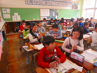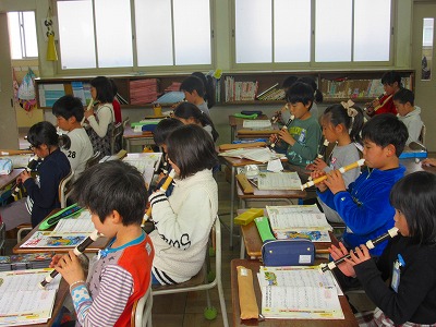 3年生が音楽で「重なり合う楽器の響きを感じ取りながら演奏する」ことをめあてにリコーダーの練習に励んでいました。
