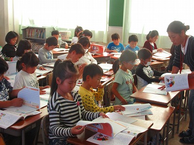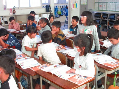 2年生が道徳で「三びきは友だち」の資料を読み、「えこひいきをしないこと」について考えていました。友だちの意見をしっかり聞いてみんなが自分の考えを高めていこうとしていました。