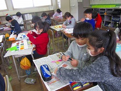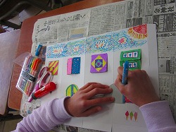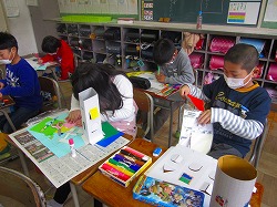 2年生が図画工作で「まどをひらいて」の作品作りに取り組んでいました。窓のデザインに工夫を凝らし、カラフルな建物の形が少しずつ見えてきました。完成が楽しみです。