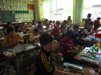 ⒌年生が図画工作で、いろいろ試しながら楽しい鏡の世界を楽しんでいました。見る角度によって、違ったものが見えてくるのも不思議ですね。
